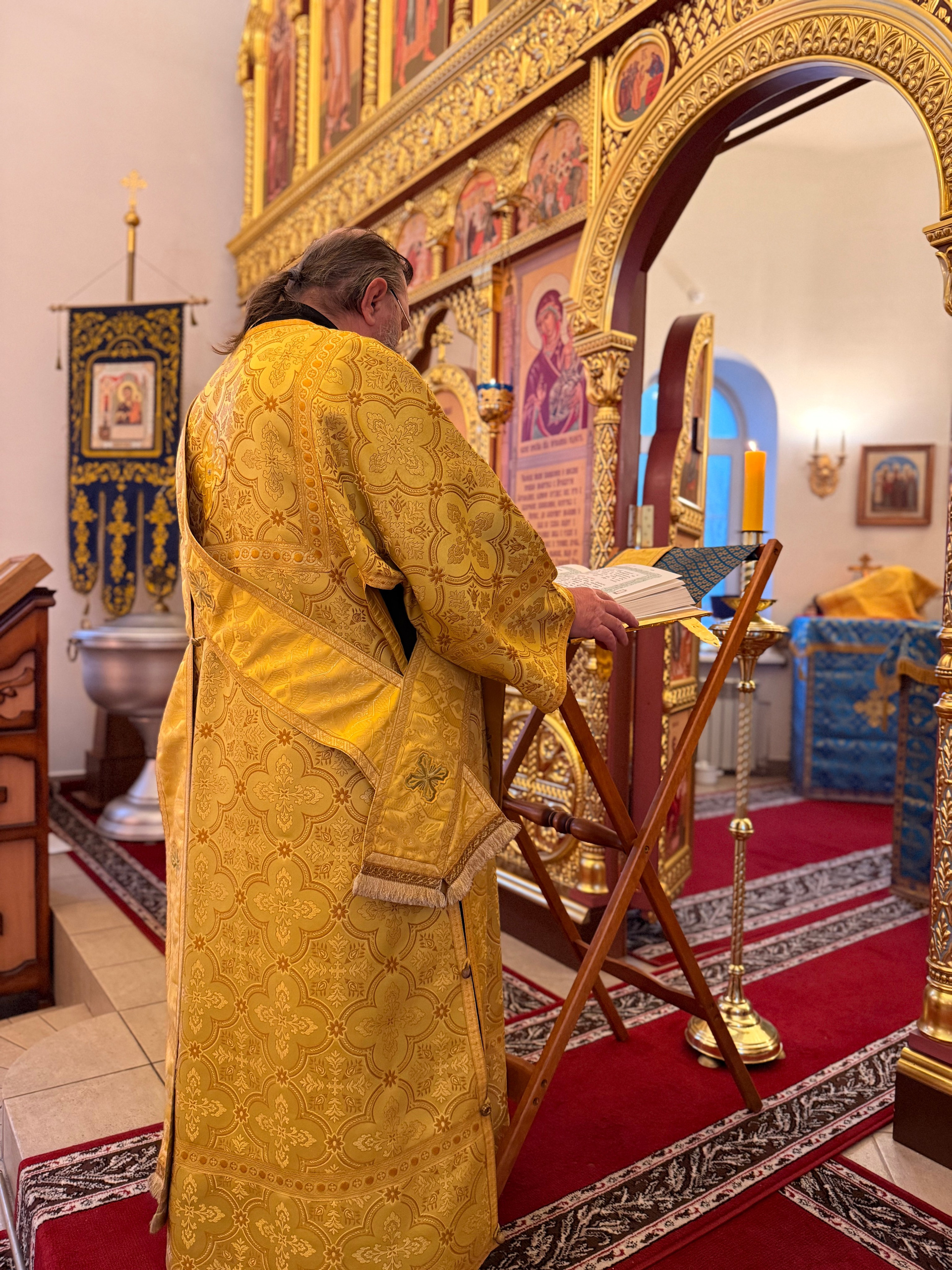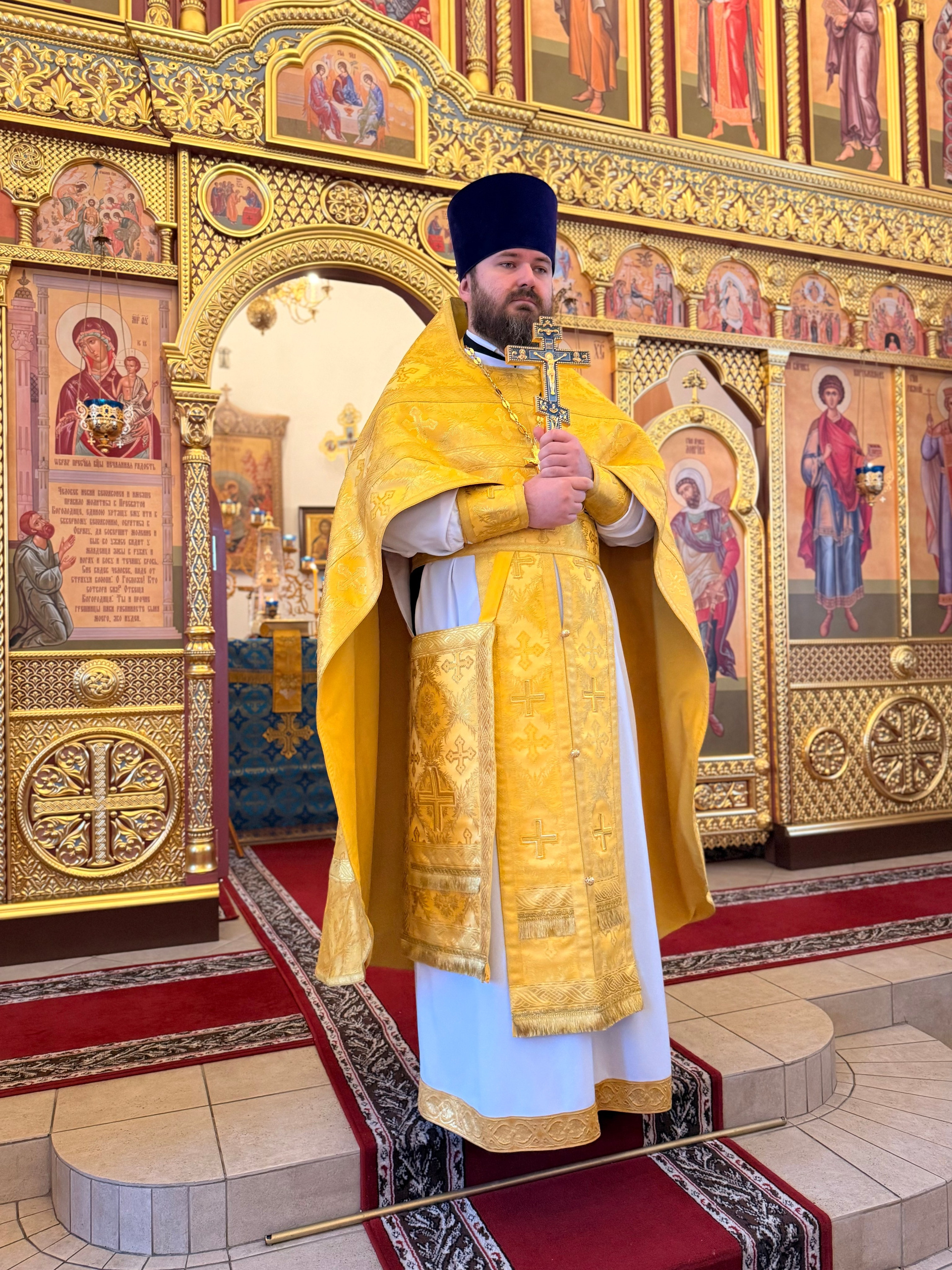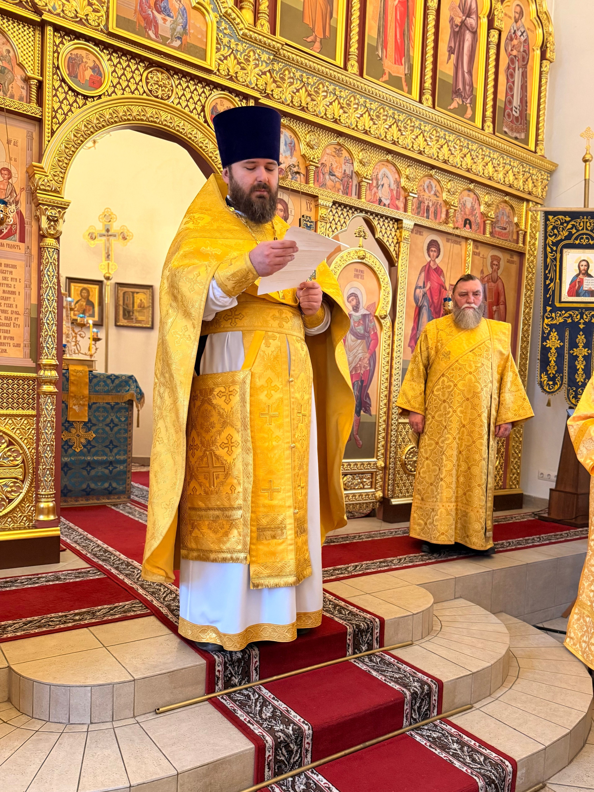 За Богослужением сослужили настоятель храма иконы Божьей Матери «Нечаянная Радость» иерей Владимир Жилкин, протодиакон храма Всех святых земли Русской просиявших Евгений Мартынов.