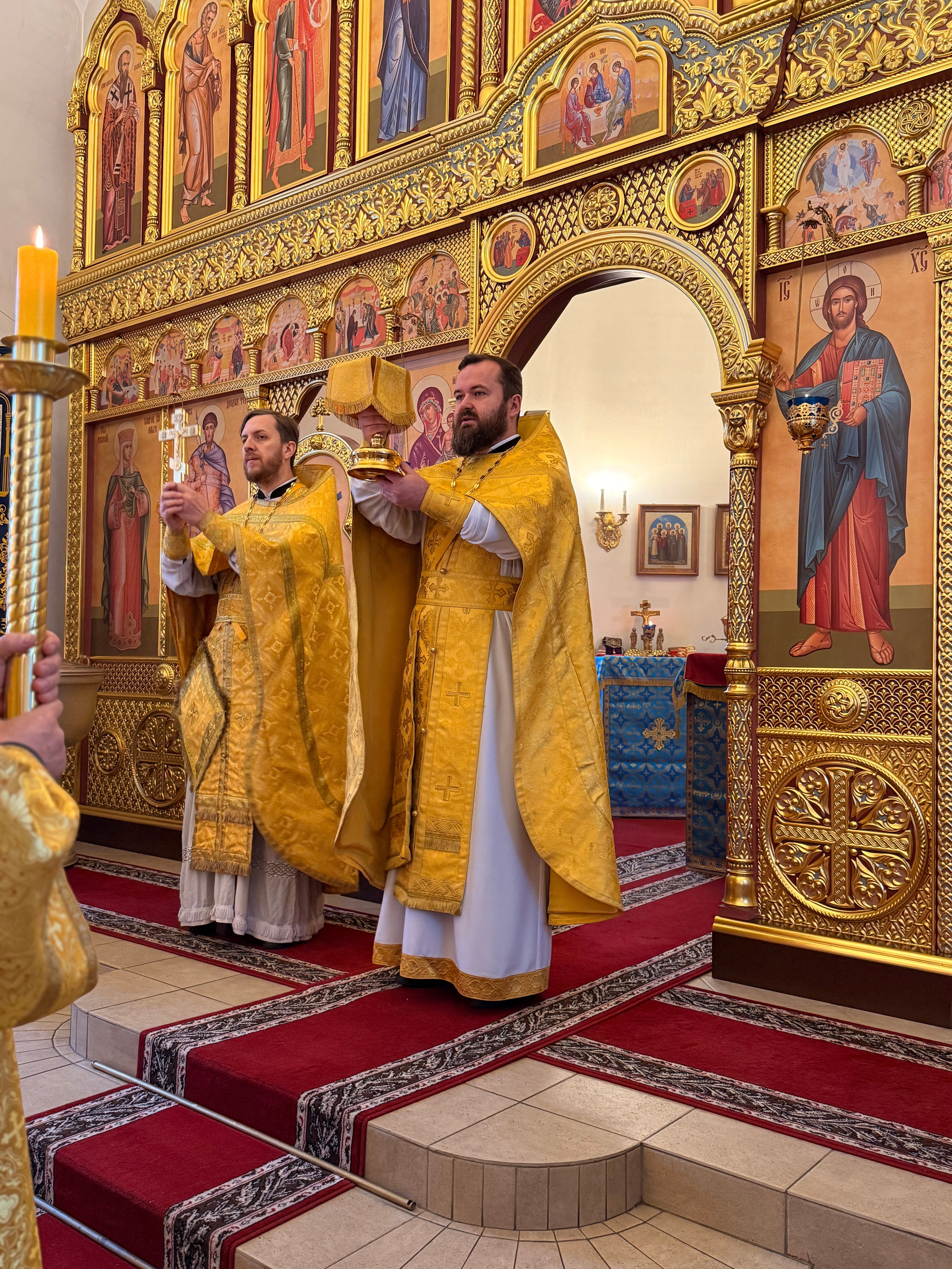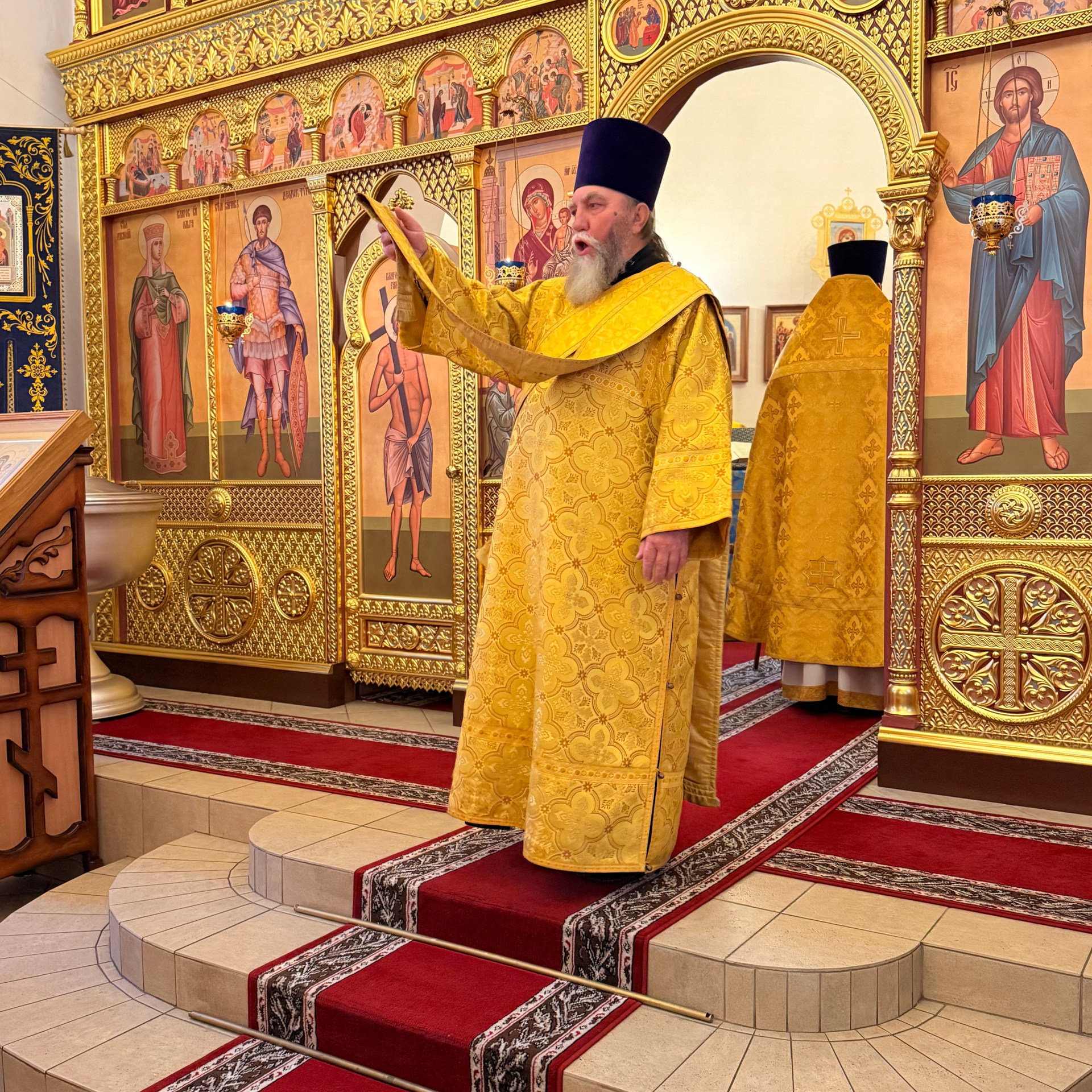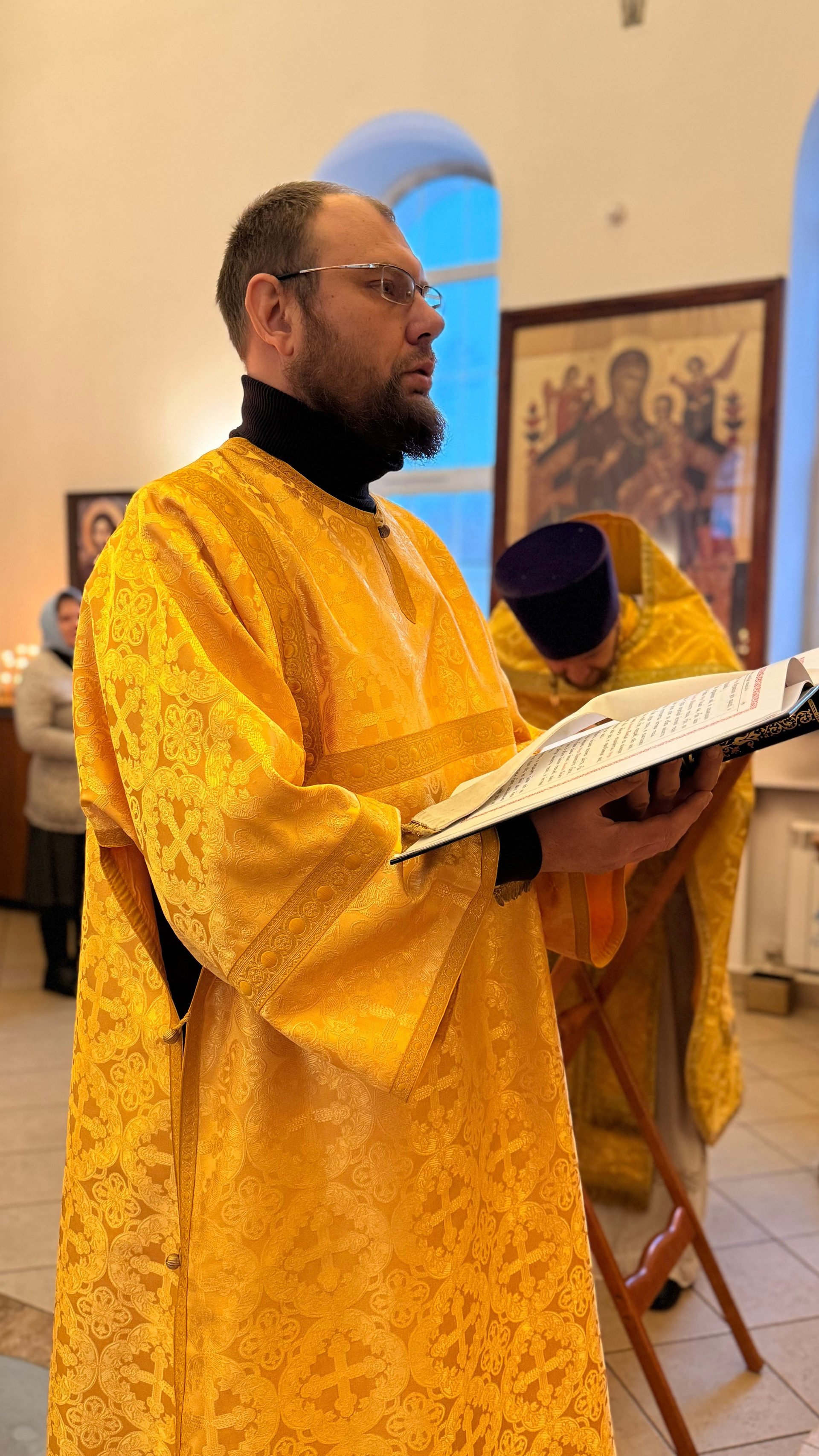 За Богослужением сослужили настоятель храма иконы Божьей Матери «Нечаянная Радость» иерей Владимир Жилкин, протодиакон храма Всех святых земли Русской просиявших Евгений Мартынов.