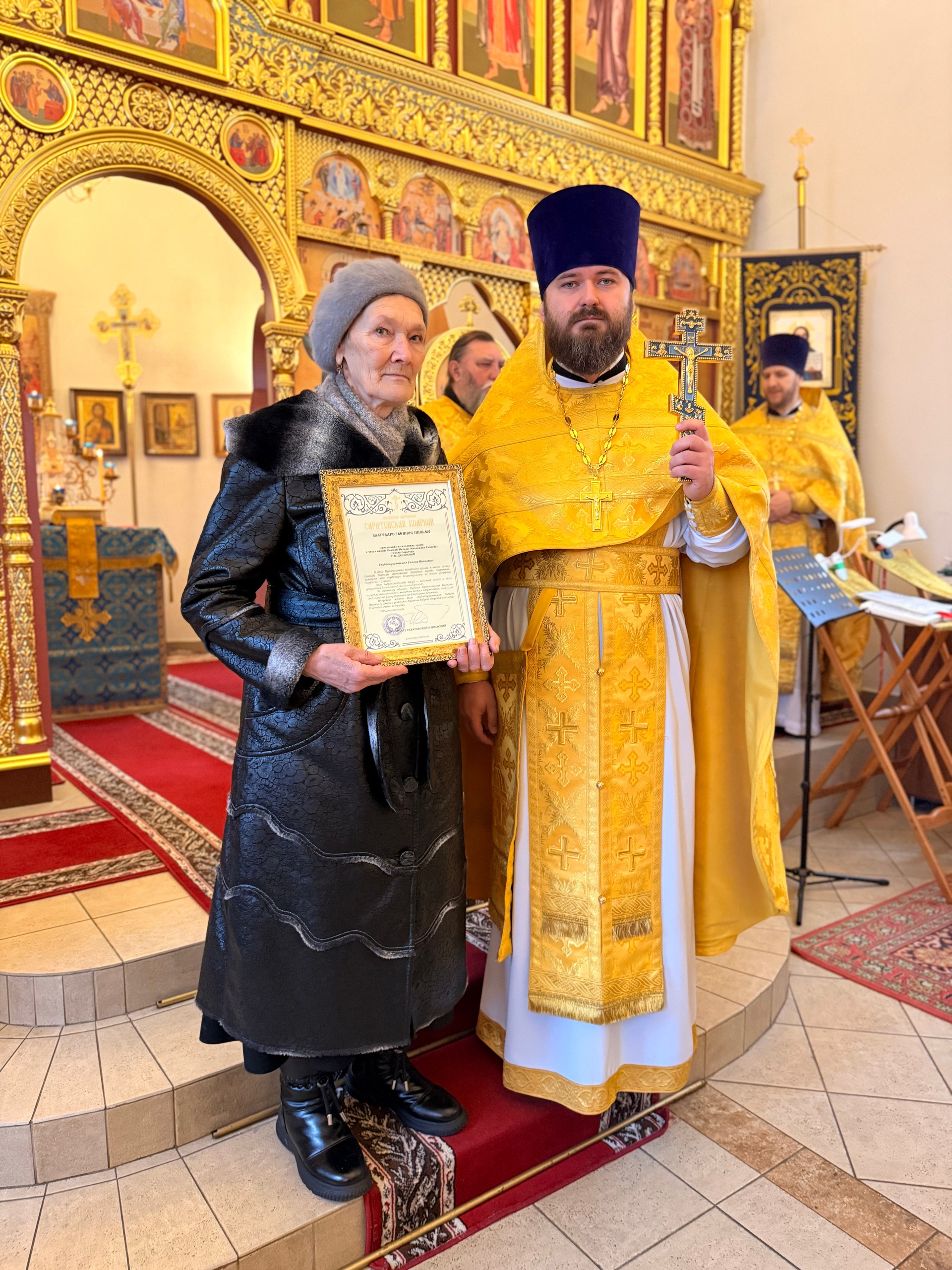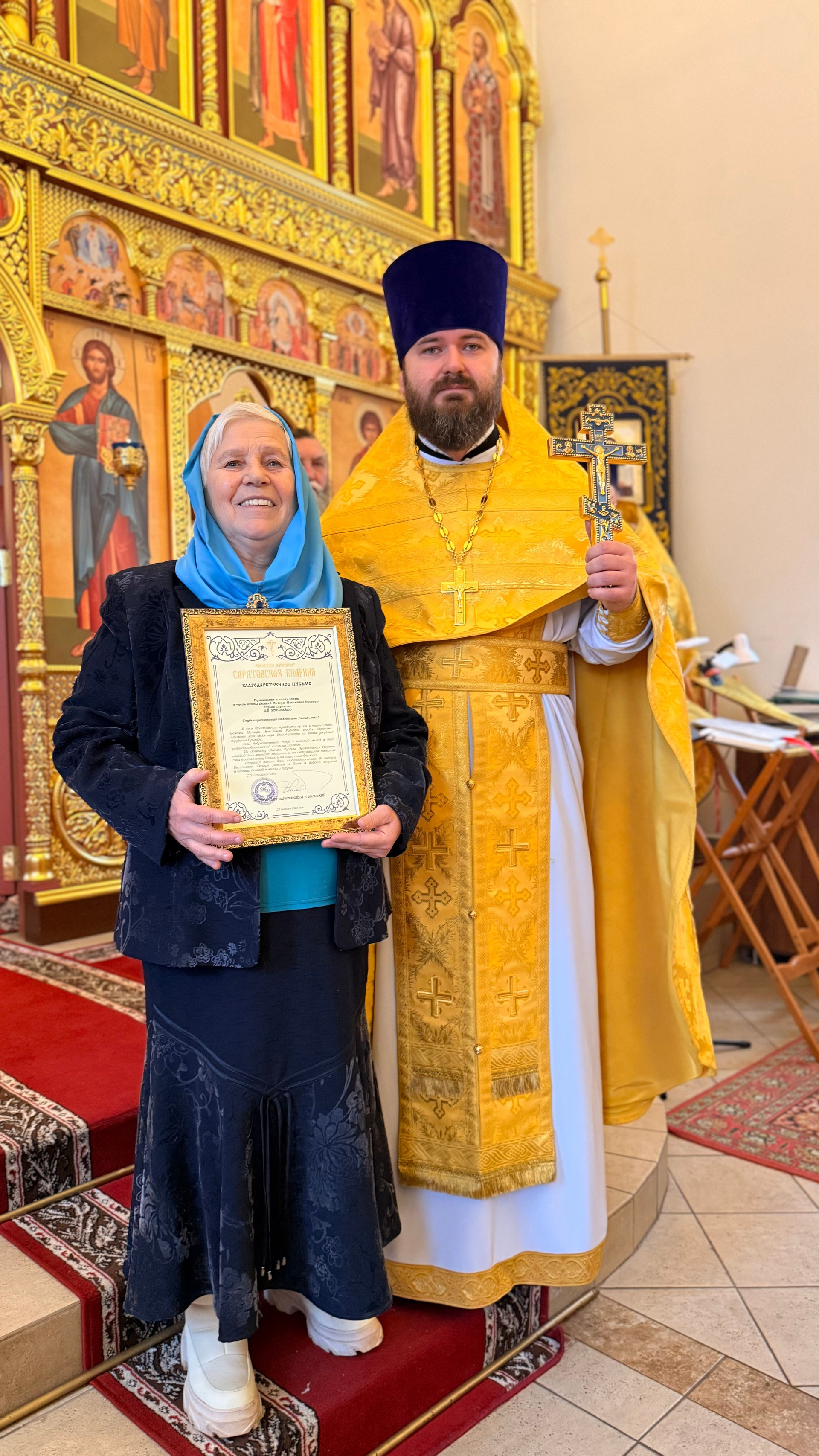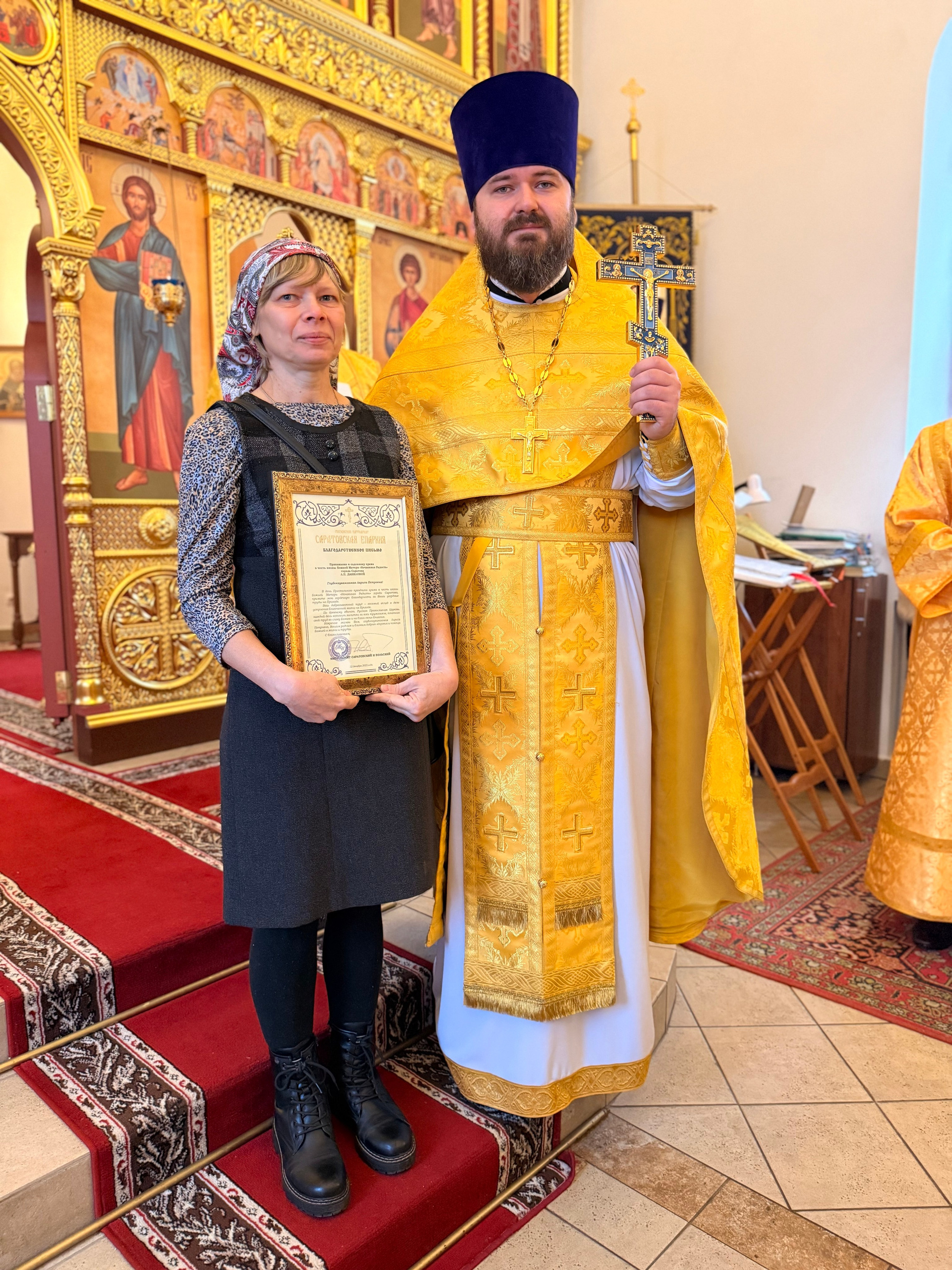 На кануне престольного праздника, по благословению митрополита Саратовского и Вольского Игнатия, во внимание к благотворительной помощи, многолетним усердным трудам во благо Церкви Христовой, а также активное участие в жизни Прихода храма в честь иконы Божией Матери «Нечаянная Радость» города Саратова, награждены Архиерейской грамотой семья прихожан Михеев Анатолий Геннадьевич и Бехметьева Мария Вячеславовна, благодарственными письмами были отмечены Данилова Галина Ивановна, Данилова Лариса Петровна, Овчаренко Людмила Владимировна, Муравейко Валентина Васильевна.